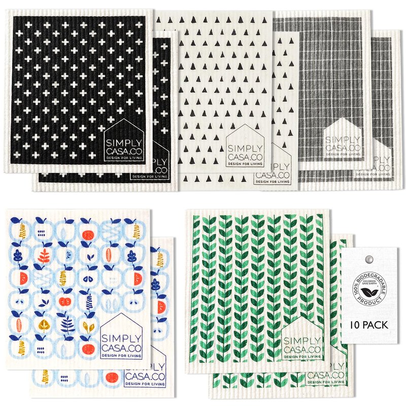 SIMPLYCASA Swedish Dishcloth Sponge Pack of 10, Eco-Friendly 100% Biodegradable Cellulose Sponge Cleaning Cloths, Kitchen Cloths