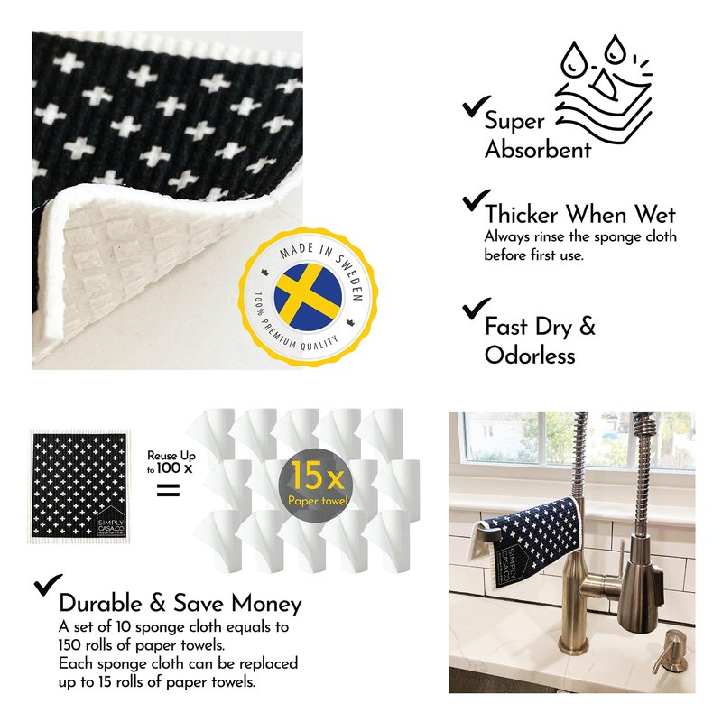 - Perfect for use in the kitchen, bathroom and office; can be used on every surface area in your home. Machine wash safe.SIMPLYCASA Swedish cloths are Scandinavian inspired for a modern kitchen décor.