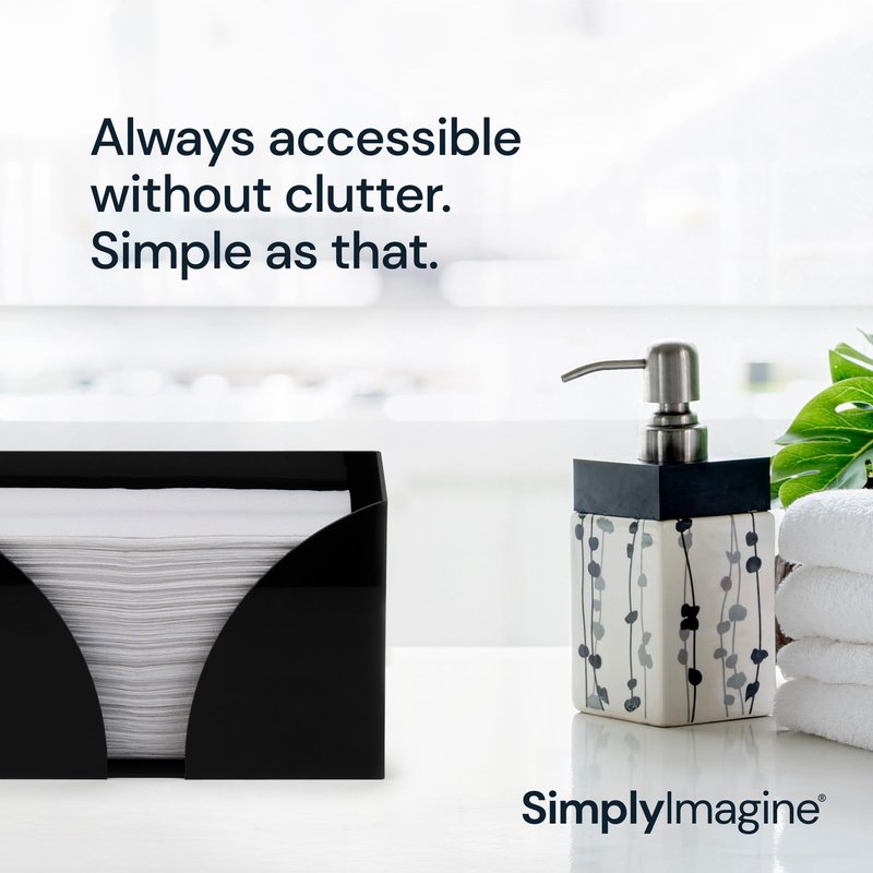 Simply Imagine Paper Towel Dispenser is our innovative, must-have solution for any home or commercial space. Our bathroom paper towel holder is made with a focus on hygiene and convenience, ensuring a clean and organized space. The hands-free design ensures that your hands stay clean at all times, eliminating concerns about wet towwl. Measuring at a compact 10.75" x 6.5" x 4", our acrylic napkin holder is the perfect countertop solution. Whether you're in the bathroom, kitchen, living room, guest room, office, or toilet, this paper dispenser stands ready to provide folded napkins whenever you need them. It's a convenient and accessible storage utensil solution, keeping all your folded paper in one tidy place. The elegant design of our dispenser adds a touch of style to any space. It accommodates various towel sizes, offering a practical bathroom napkin holder with a clear and modern design that allows you to monitor tissue levels effortlessly. For both house and professional use its design signals when it's time for a refill, making it perfect for a restaurant, bar, shop. The paper dry hand towel holder can stand on table, desk, cabinet, shelf, or wherever you need them. Stylish and simple, our retractable holders seamlessly adapt to any setting with their minimalistic design. Produced with high-quality materials, our organizer for dry napkins will serve you for long time. Store c-fold, trifold, z-fold, hand paper towel, napkin for kitchen or any other accessories. Without a lid on top for practical use when your hands are wet. They will seamlessly fit into your everyday life. Countertop paper towel dispenser that works for you . Choose our Reusable Counter Multi Paper Towel Box for a clutter-free, organized, and hygienic solution that adds both style and functionality to your space. Simply Imagine a better way to keep your space clean and organized.