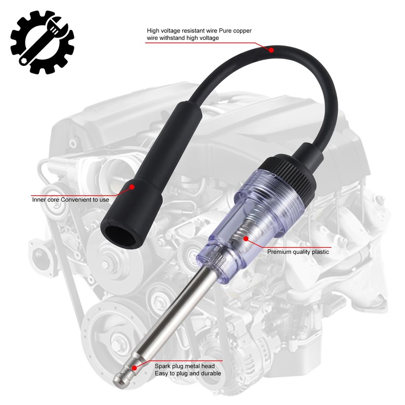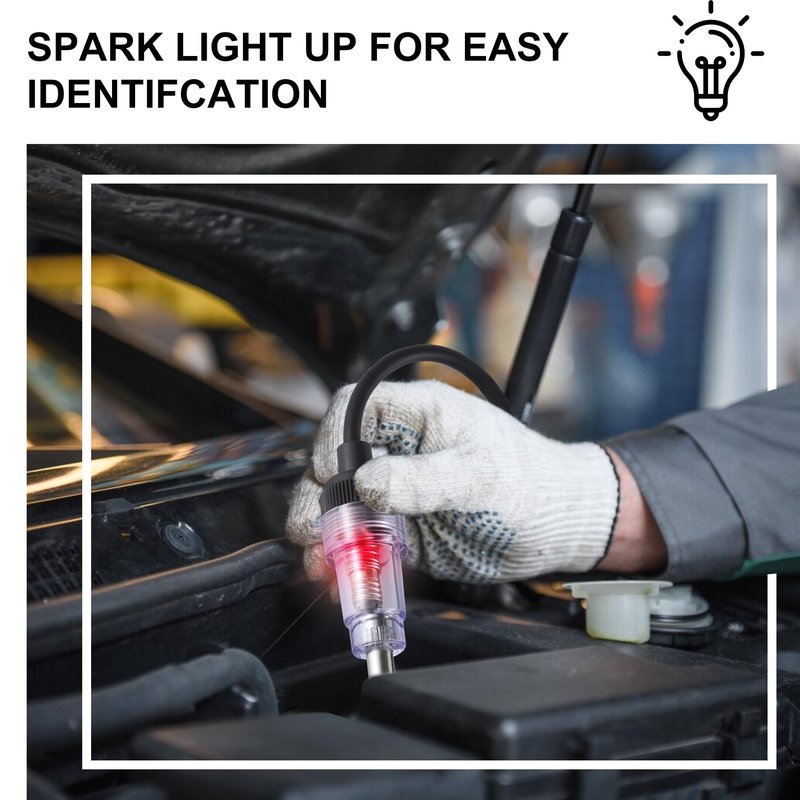 - About use: Just connect the tester between the spark plug and the spark plug wire, and it takes about 30 seconds for the internal combustion engine to troubleshoot. If the engine can emit spark, the tester bulb reflects the spark and lights up, so as to quickly find the fault point and bad circuit of the spark plug.
