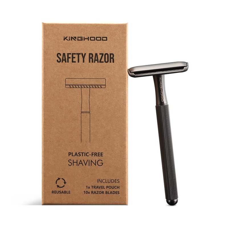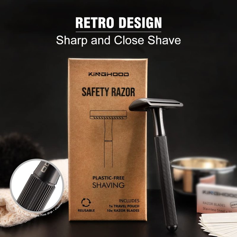 Single Blade Safety Razor for Men, Closed Comb, Includes 10 DE Blades