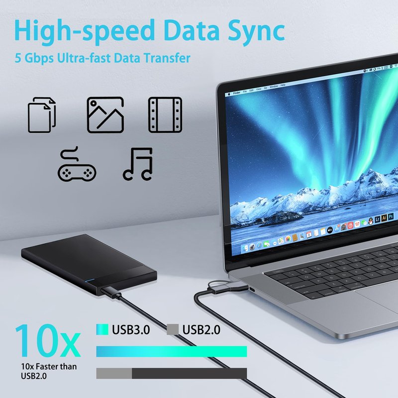 - 【2in1 design charging cable】 The usb c 60W fast charging cable combines two charging heads into one. The short usb c cable connects the hard disk for data transfer up to 10Gbps. You only need to carry one cable when connecting multiple devices, it doesn't take up space in your backpack or car, and the short cable fits in tight places and reduces the burden of carrying.