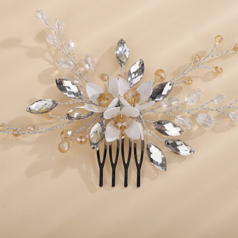 Sither Bridal Flower Hair Clip for Wedding Silver Hair Comb with Yellow Crystal for Women Hair Accessories for Bride Hair Clip Headpiece for Wedding Party Prom Gift