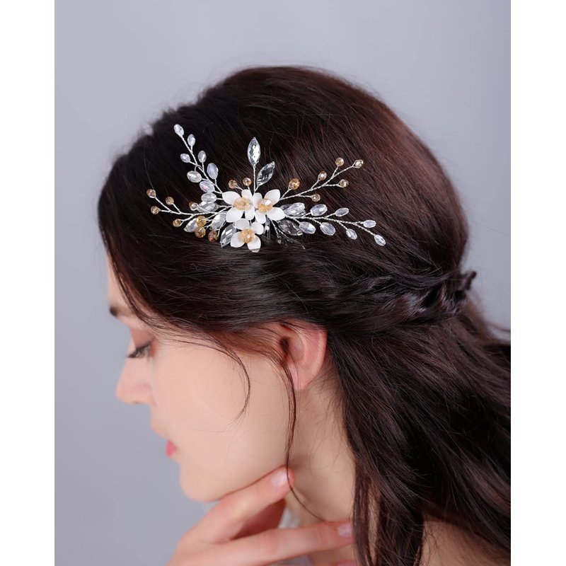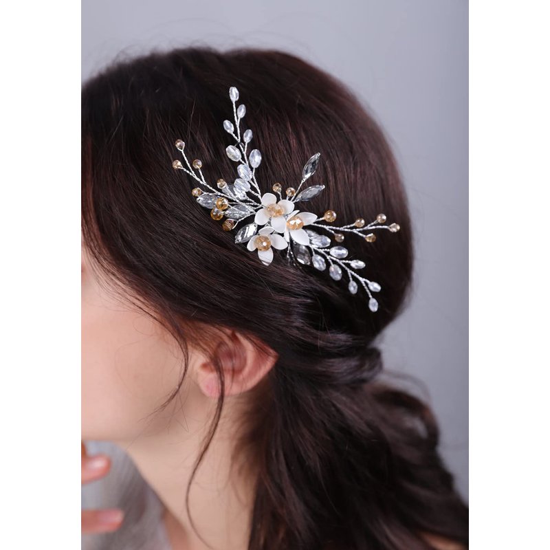 - ✔ 【 Light Weight Material 】 Strong Alloy,pearls,crystal,metal wires,gently clip it in your hair,it will keep a whole day.