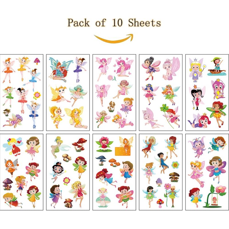 SIX VANKA (Pack of 10 Sheets) Floral Fairy Waterproof Temporary Tattoo Stickers for Kids Boys and Girls, Party Favors Decorations