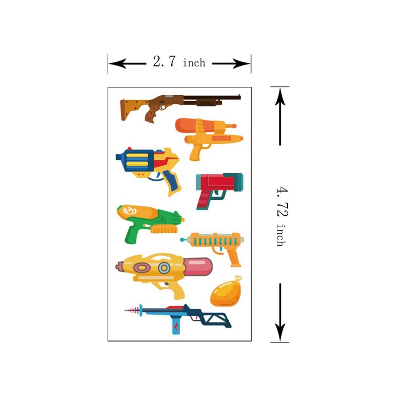 - 【10 different sheets】The package includes 10 different sheets of Gun Tattoo Stickers for kids, boys and girls.