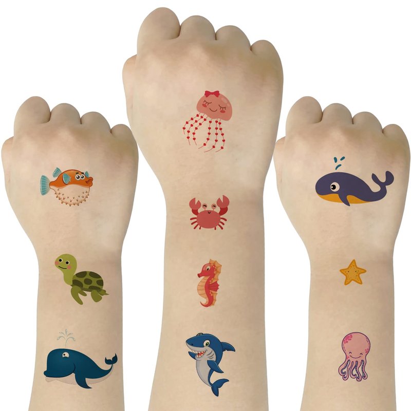 - 【10 different sheets】The package includes 10 different sheets of Marine Animal Tattoo Stickers for kids, boys and girls.