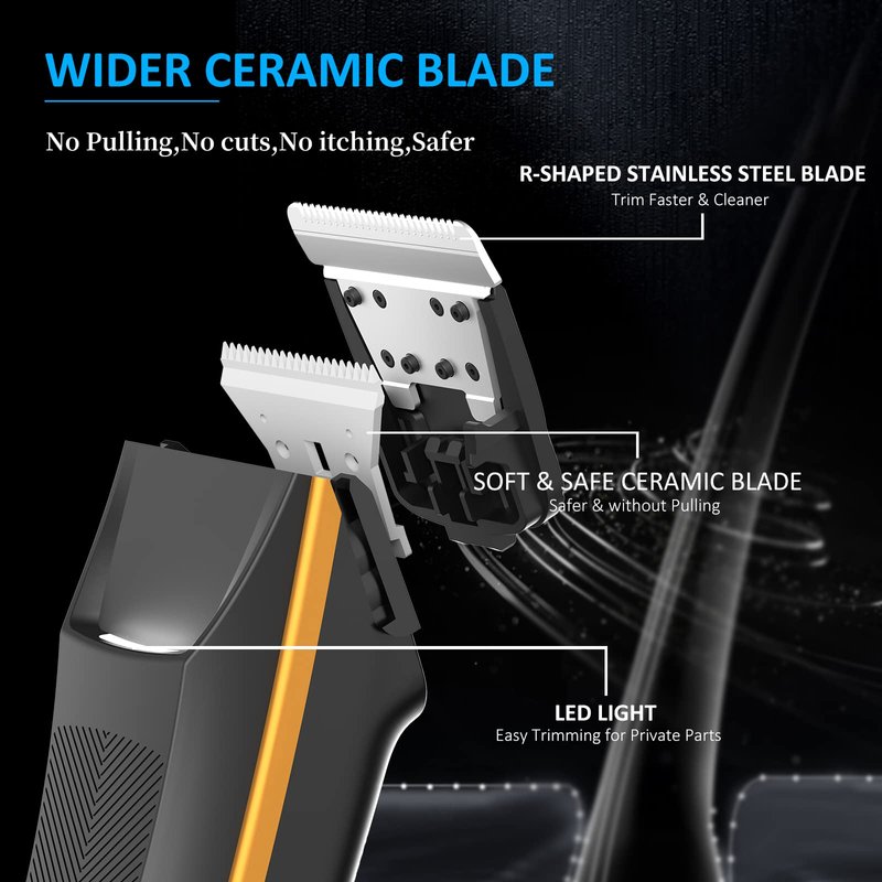 - [Detachable Head Trimmer with Powerful Performance]The comfortable groin hair trimmer powerful motor runs at a high speed of 6500 rpm/min, which can quickly trim without scratching the skin. Comes with 2pcs replaceable quality ceramic blades which are removable and rust-proof.Guaranteed to trim hair without cutting, pulling or irritating skin. Portable ball trimmer is very suitable for business travel , vacation, travel