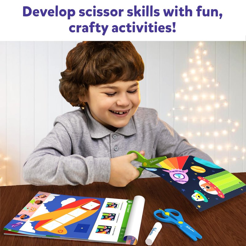 - INCLUDES: Activity Booklet with 25 Activities, 2 Child Safe Scissors, 1 Glue Stick
