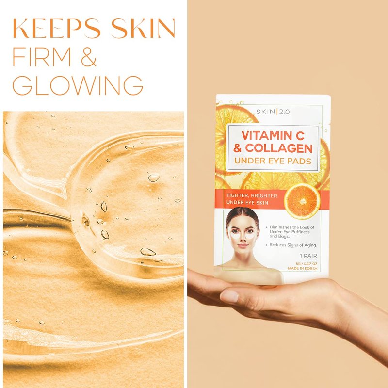 Skin 2.0 Vitamin C and Collagen Under Eye Patches - Brightens Dark Circles, Tightens Under Eye Skin, Anti-aging & Firming Under Eye Pads - Cruelty Free Korean Skin Care For All Skin Types - 5 Pairs