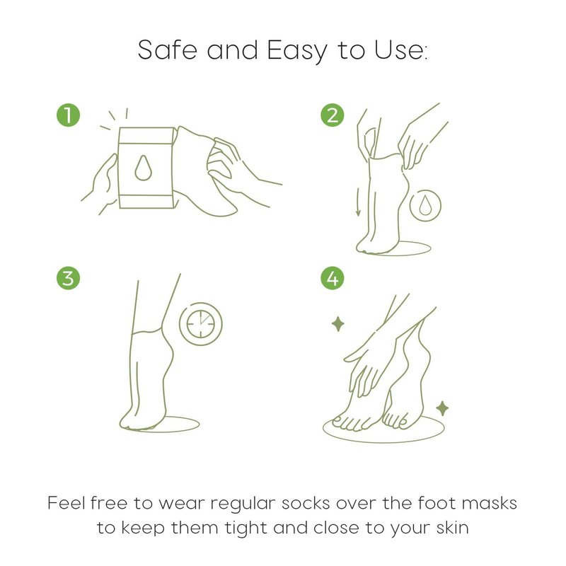 - EASY TO USE: Our foot mask is designed for convenience and simplicity. Just slip it on, relax for the recommended time, and let the mask do its magic. No mess, no fuss, just effortless foot care in the comfort of your own home.
