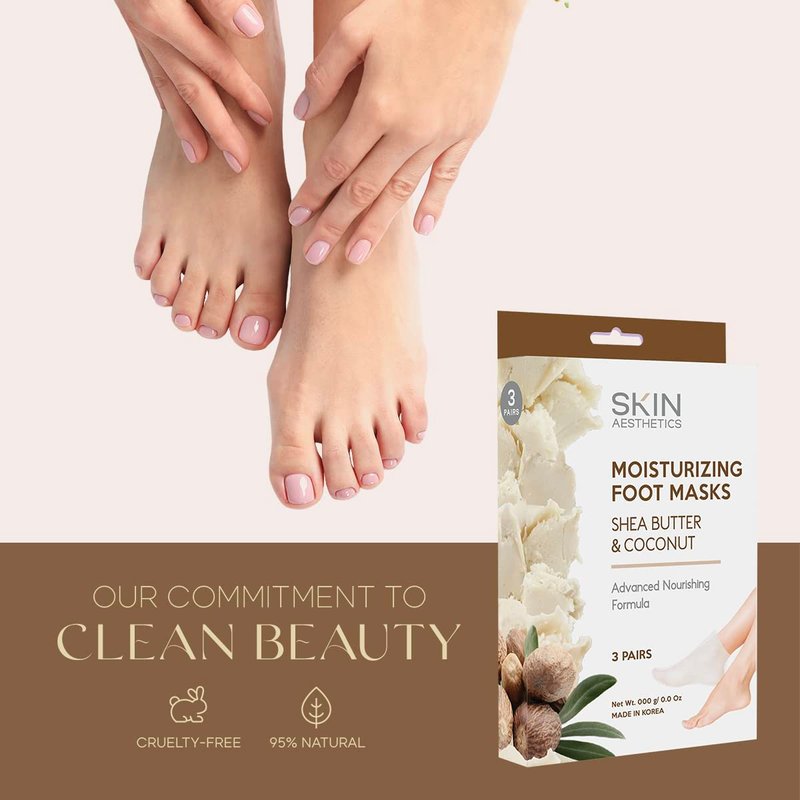 Skin Aesthetics Shea Butter & Coconut Foot Masks Moisturizing Socks - Moisturizes Tired, Dry & Cracked Feet, Exfoliating Hydrating Foot Mask - Cruelty Free Korean Skin Care - All Skin Types - 3 Pairs