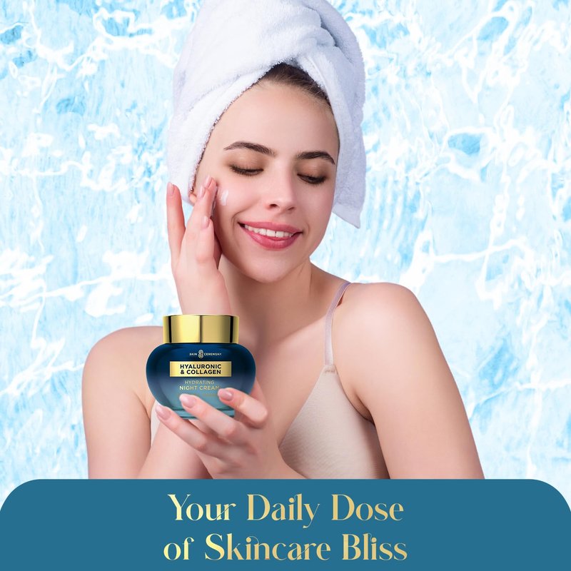 Experience the transformative power of Skin Ceremony Night Cream with Hyaluronic Acid and Collagen, your ultimate solution for deeply hydrated, youthful-looking skin. This luxurious night cream is expertly formulated with hyaluronic acid to intensely hydrate and plump the skin, smoothing out fine lines and wrinkles while combating dryness. Its unique blend of ingredients works synergistically to improve skin texture and elasticity, ensuring your skin feels supple and rejuvenated. Collagen, a key component of this cream, enhances hydration further by strengthening the skin’s barrier function and improving its elasticity. This night cream is designed to provide comprehensive care, addressing multiple signs of aging and dryness in one go. Embrace the benefits of clean beauty with our commitment to no parabens, phthalates, or GMOs, ensuring a product that is not only effective but also kind to your skin and the environment. Our cruelty-free and vegan formula reflects our dedication to ethical skincare practices, allowing you to indulge in luxury while supporting a brand that prioritizes natural, sustainable ingredients. Wake up to a visibly renewed complexion and radiant skin every morning with Skin Ceremony Night Cream, your partner in achieving and maintaining a glowing, youthful appearance.