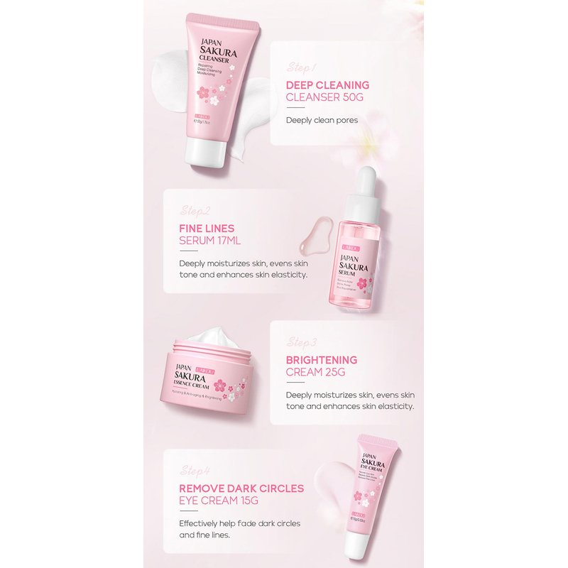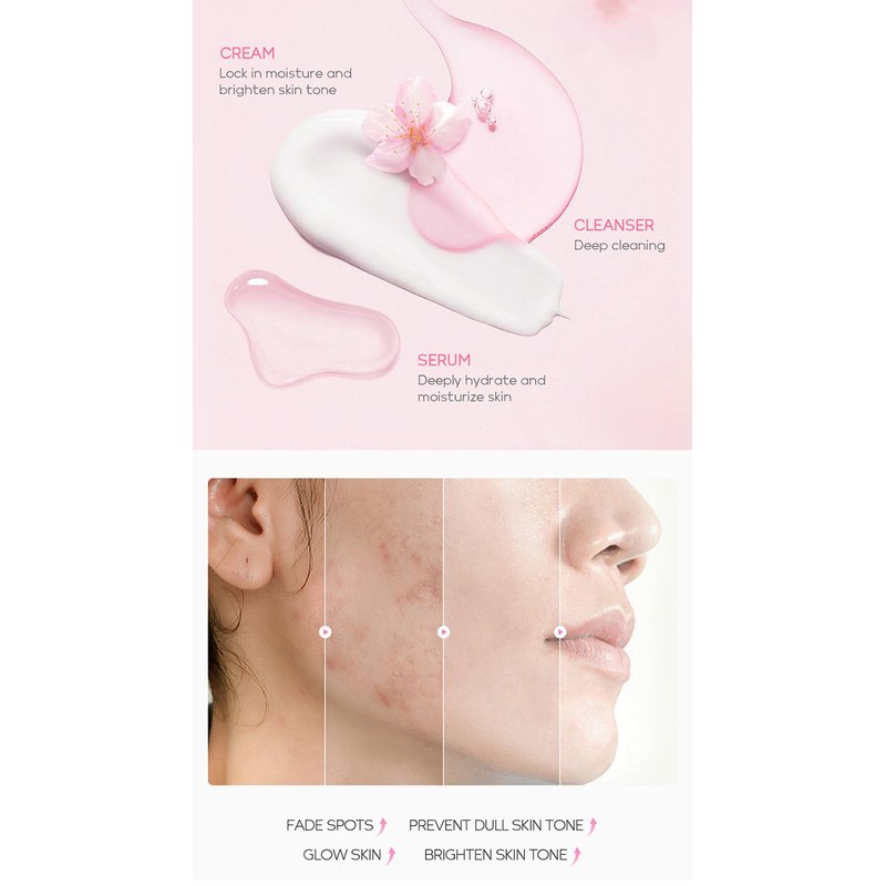- Hydrating and Moisturizing: Our skincare set is infused with sakura/ cherry blossom extracts that helps hydrating and moisturizing dry skin, leaving you with a healthier glow.