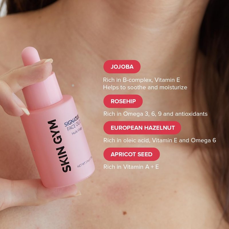 - Signature Face Oil: Experience the richness of jojoba, providing soothing and moisturizing benefits. Embrace the power of rosehip, abundant in Omega 3, 6, 9, and antioxidants. Nourish your skin with hazelnut and apricot seed, packed with vitamin A & E. Reveal a radiant and revitalized complexion with this nutrient-rich blend.