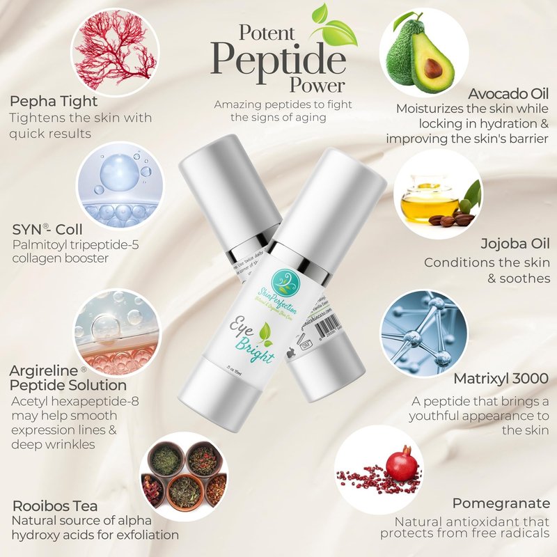 Skin Perfection Eye Bright Anti-Aging Eye Cream 25% Argireline 15% Matrixyl 8% Pepha Tight Hyaluronic Acid Crow's Feet Lift Lids Under-eye Dark Circles Puffiness Antioxidants 0.5 oz