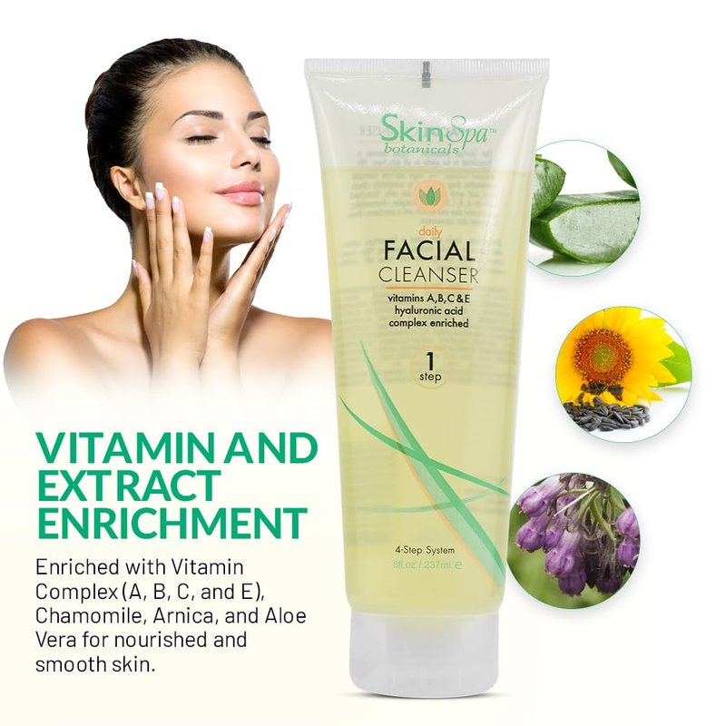 - Our SkinSpa Botanicals Daily Facial Cleanser is formulated to be gentle on all skin types. It lifts away make-up, impurities, and dead skin cells without irritations. This tingly, salt-free, formula penetrates deep into pores to completely clean skin. Enriched with an A,B,C, & E Vitamin complex, Chamomile, Arnica, & Aloe Vera Extract, it is paraben-free for great skin rejuvenation.