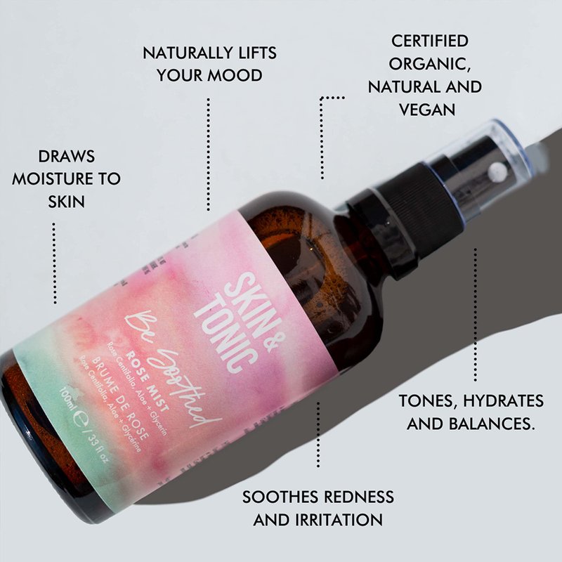 SKIN & TONIC Be Soothed Rose Mist – Facial Toner with Rose Water and Aloe Vera – for Hydrating, Cooling and Toning – 100ml