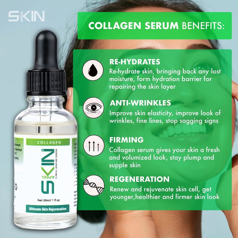 Skinapeel Collagen Serum 30ml 1 fl. oz Clinical Skincare London Made In UK- Use With Micro Needle Derma Roller and Stamp