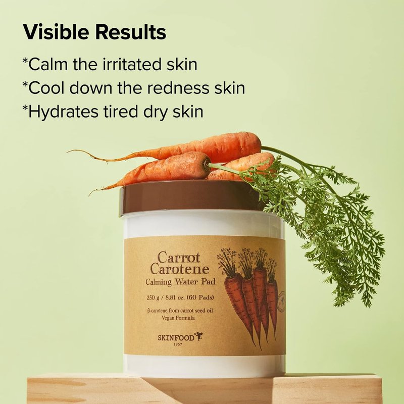 SKINFOOD Carrot Carotene Calming Water Pad 250g (8.81 oz.) 60 Sheets- Redness Relief Soothing Facial Toner Pads for Sensitive Skin, Cruelty Free, Valentine Day Gift