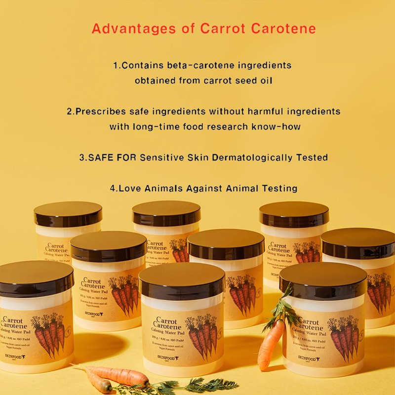 - Benefits of Carrot Carotene - β-Carotene is an excellent skin antioxidant and moisturizing effect with a Vitamin A precursor. This basic care line provides moisturizing and soothing effects to sensitive skin with β-Carotene derived from natural carrot seed oil using an extraction technique certified by Korean Ministry of Agriculture.