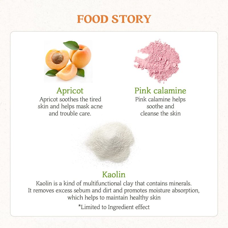 - Apricot Food Mask - Wash-off mask allows you to give self-administered home-care every day differently depending on skin concern and area. Pure Turkish Apricots packed with sweet flesh that withstood the scorching summer of the Mediterranean climate.