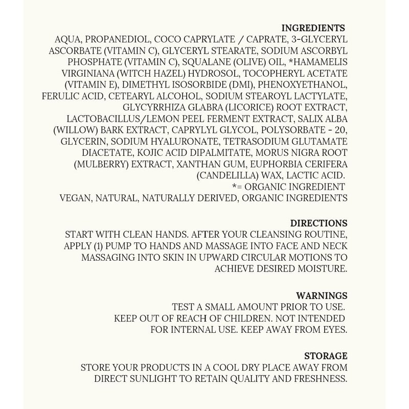 - YOUR NEW DAILY ROUTINE: A must-have addition to your skin care kit, this antioxidant face moisturizer for women and men is your new best friend; After your cleansing routine, apply 1 pump to the clean hands and massage into the face and neck, working into the skin in upward circular motions to achieve the desired moisture