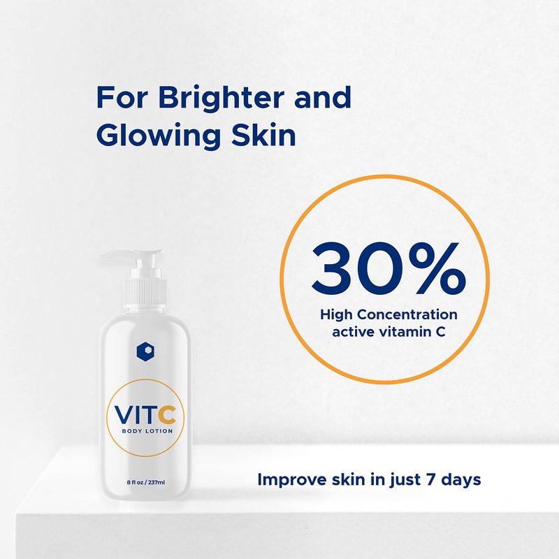 Skinlocity VIT C Body Lotion - Vitamin C Body Lotion - Reduce Fine Lines, Age Spots, Sun Damage, For Clear Bright Skin and Great for High Sun Exposure, for Optimal Skin Health, 8 Fl Oz