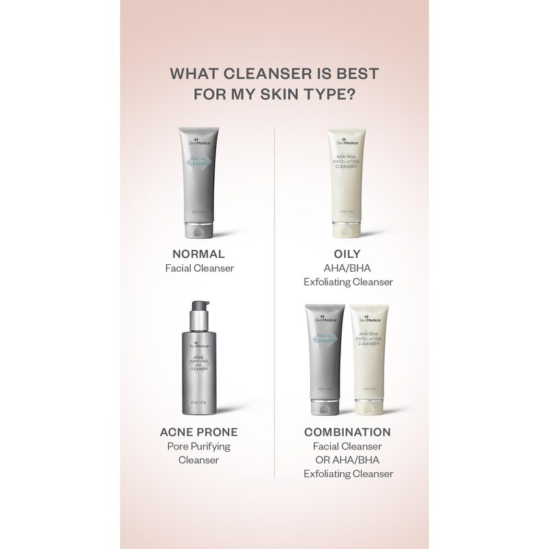- SkinMedica Facial Cleanser gently removes dirt, oil, makeup and other impurities without causing irritation.