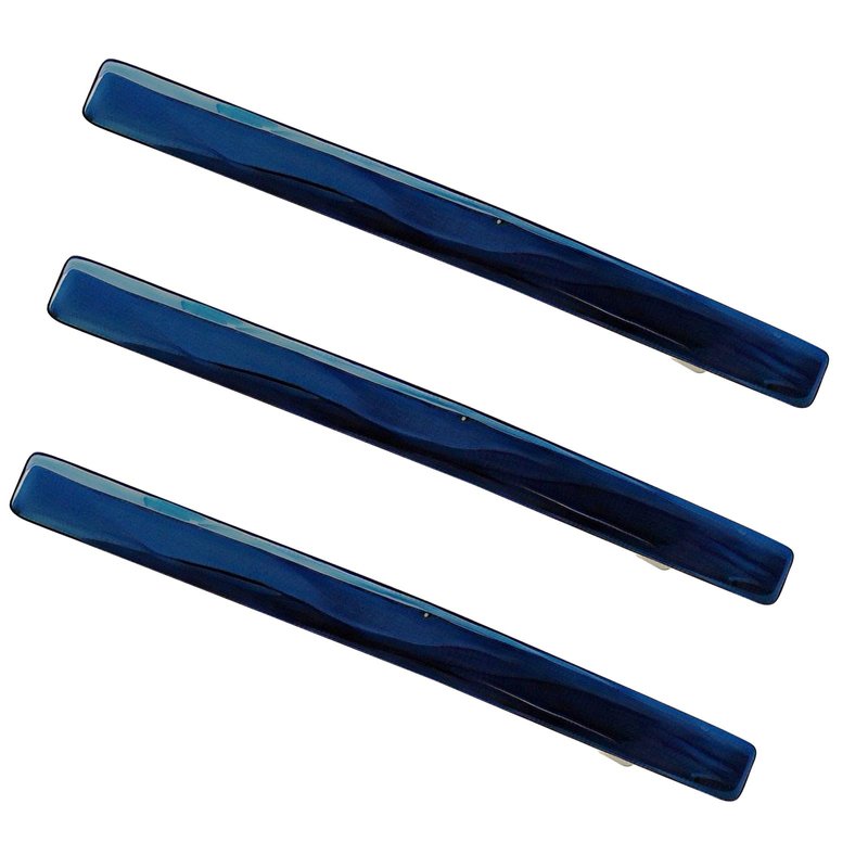 Skinny Slim Tortoise Shell Acetate French Barrettes Flat Acrylic Hair Clips For Fine, Kinky Hair Strong Hold Cute Hair Styling Ponytail Holder for Girls,3 Pcs (Blue)