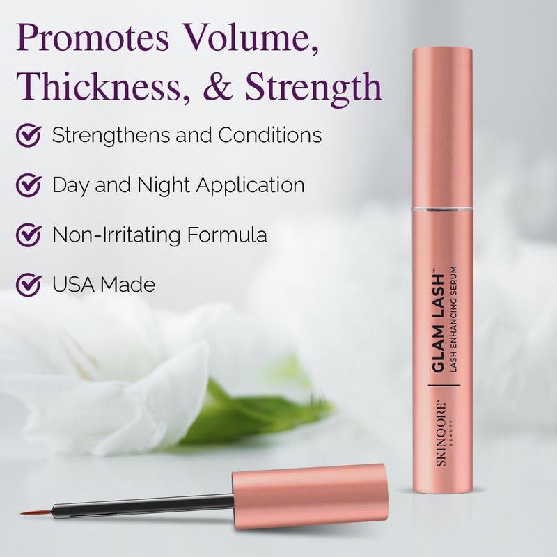 Revolutionary Lash Growth Begins with the Exclusive Skinqore GlamLash Serum When you’re struggling with weak, brittle lashes or sparse eyebrows it can really impact your confidence. That’s because you don’t feel like you look your best when you’re out there trying to reach your goals. We created Skinqore GlamLash Serum as an all-in-one lash and brow formula that helps restore strength, volume, and thickness, so you can finally capture a look or style that makes you feel the most beautiful and confident. Formulated with keratin-boosting ingredients our lash enhancing serum can help create fuller, longer lashes in weeks by optimizing your lash line and nourishing every hair.