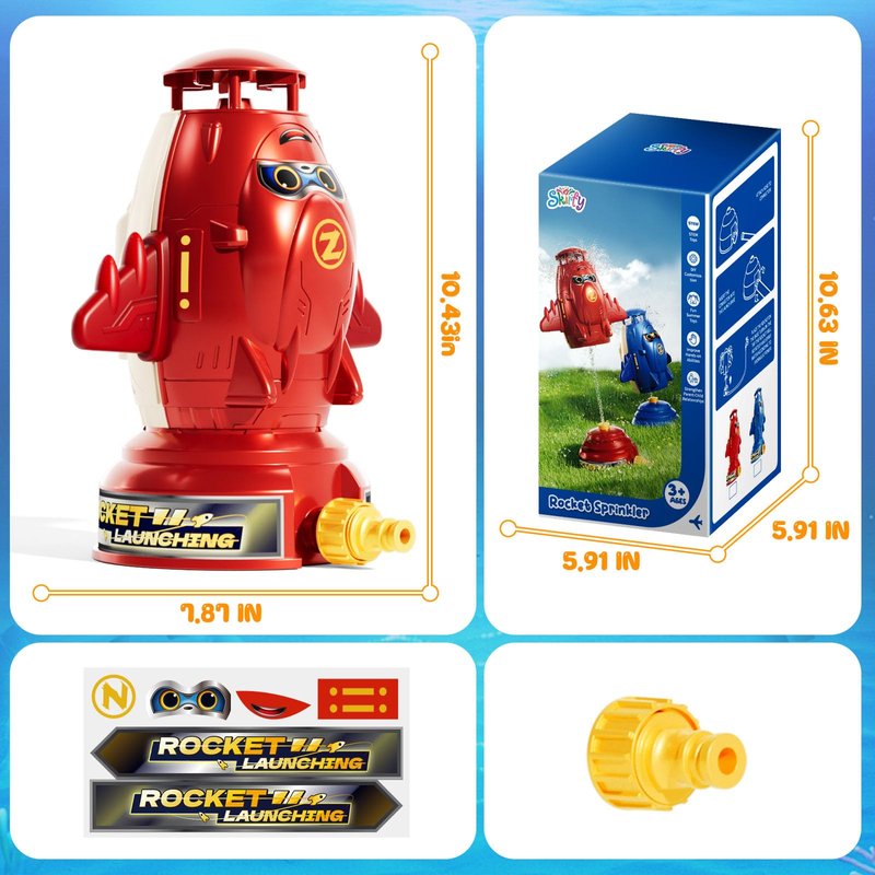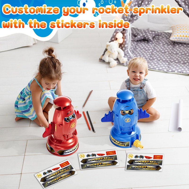 - ăDIY Rocket Launcheră Ignite kids' Infinite Creativity! This water sprinkler for kids features a cute cartoon design and cartoon stickers for children to DIY their sprinklers for yard kids according to the instructions! Let them experience fun with family and friends this summer, sparking their learning abilities and nurturing creativity. Let children show off their unique rocket launcher!