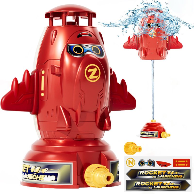- đăWater Rocket Sprinkler for KidsăConnect the garden hose to the sprinkler base and watch the water push the cockpit upward, rotate 360° and spray water all around. The outdoor kids sprinkler captures children's interest and sparks their curiosity by mimicking a real rocket launch. Depending on water pressure, height can reach 5.2-6.9 feet. This children's water sprinkler toy is engaging and sparks interest in science, technology, engineering, and math.