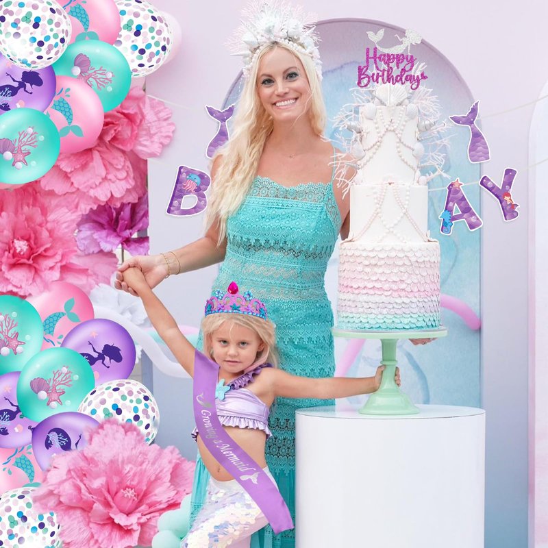 Make your girl special and dazzling on this special day with the purple mermaid crown and purple birthday sash; Lots of colorful mermaid balloons creating romantic atmosphere and perfect props for taking pictures.