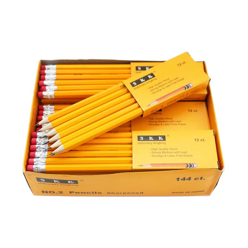 SKKSTATIONERY Pre-sharpened pencils, Pencils Sharpened with eraser top, 2 HB pencil, 144/box.