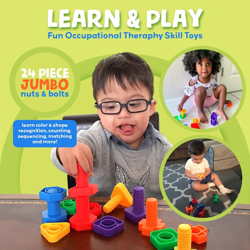 Skoolzy 24 Pieces Jumbo Nuts and Bolts Assortment, Fine Motor Toys for Kids, Occupational Therapy Games Manipulatives for Pre Schoolers, Building Blocks for Special Education with Ebook
