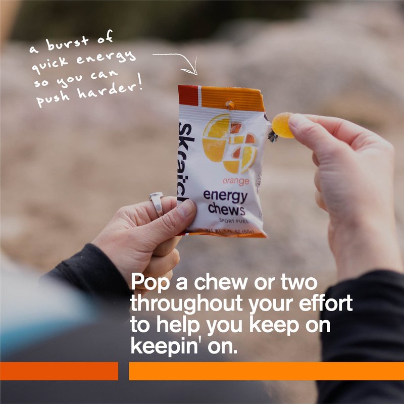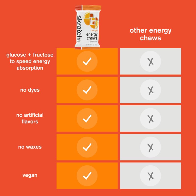 - REAL ORANGES: Skratch Labs Energy Chews are made with real fruit, like sweet and tangy oranges, for a refreshing burst of flavor that tastes great and fuels your workout.