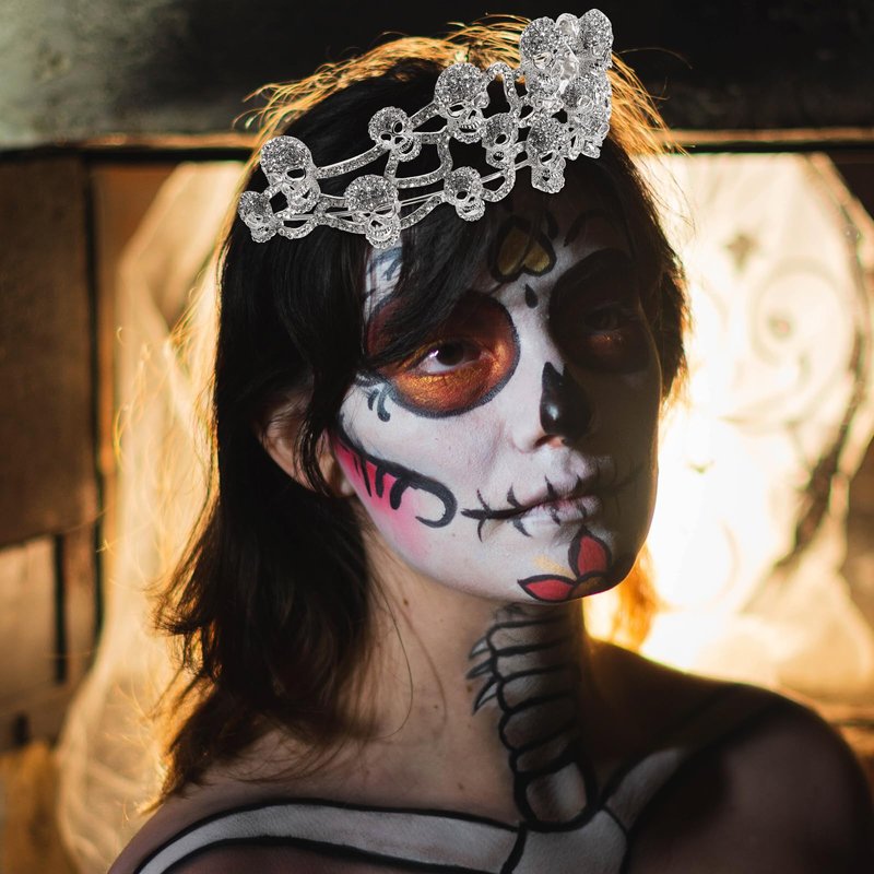 - Halloween Skull Hair Band: It is well-made of premium and sturdy materials, safe and practical for -lasting using time. This tiara design based on vintage style, greatly to show its culture and fashion. Alloy is with diamond look and hard texture for practicality and aesthetics