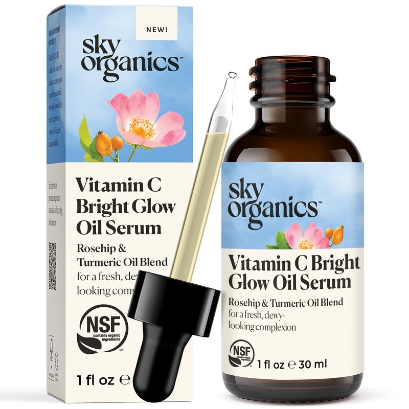 Sky Organics Vitamin C Serum, Bright Glow Face Serum Unveil a fresh, brighter-looking complexion with Sky Organics Vitamin C Face Serum. Made with just 5 simple, pure and potent ingredients, this special blend is crafted to support a brighter-looking complexion, helping rejuvenate dull skin for that sought-after dewy radiance. An essential serum in your daily skincare regimen.Elevate Your Glow with Organic Ingredients. A blend of organic plant oils such as Organic Rosehip Oil, Organic Turmeric Oil and Organic Jojoba Oil and Vitamin C, effortlessly sink into skin, for lightweight hydration without the greasiness, leaving it with a fresh glow. Powerful Antioxidant Blend. Vitamin C and vitamin E provide two types of glow-boosting antioxidant support to enhance your complexion. This unique serum is designed to help revive tired, dull-looking skin to reveal a more radiant, dewy appearance. As a Certified B Corporation, we pledge to meet rigorous standards of social and environmental responsibility. With our USDA Certified Organic and Leaping Bunny Certified Cruelty-Free formulations, you can indulge in pure, sustainable care that's good for you and the planet.
