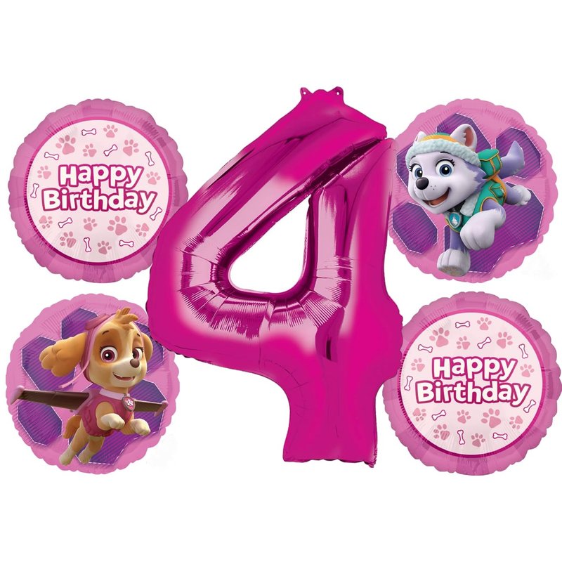 - With this Anagram Balloon Bouquet you will receive, (1) 34" Jumbo Pink Number 4 Foil Balloon, (2) 18" Skye and Everest 2 Sided Foil Balloons and (2) 18" Mayflower Products Round Dog Bones and Paw Prints Pink Happy Birthday Foil Balloons. Inflate balloons same day of event. Anagram Licensed Foil Balloons are Made in USA. Founded in 1977, Anagram leads the world in innovating and manufacturing foil balloons.