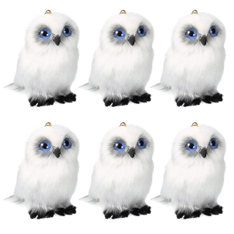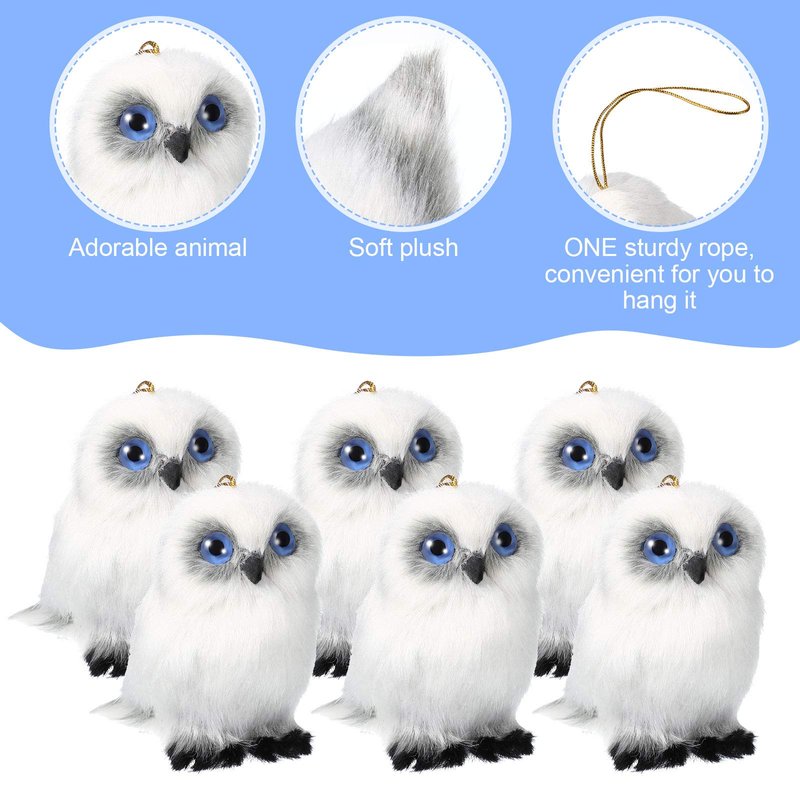Skylety 6 Pieces Mini Stuffed Owl Plush Toy 3.2 Inch White Soft Plush Owl Animal Christmas Hanging Ornament DIY Keychain for Christmas Birthday Decorations Party Presents