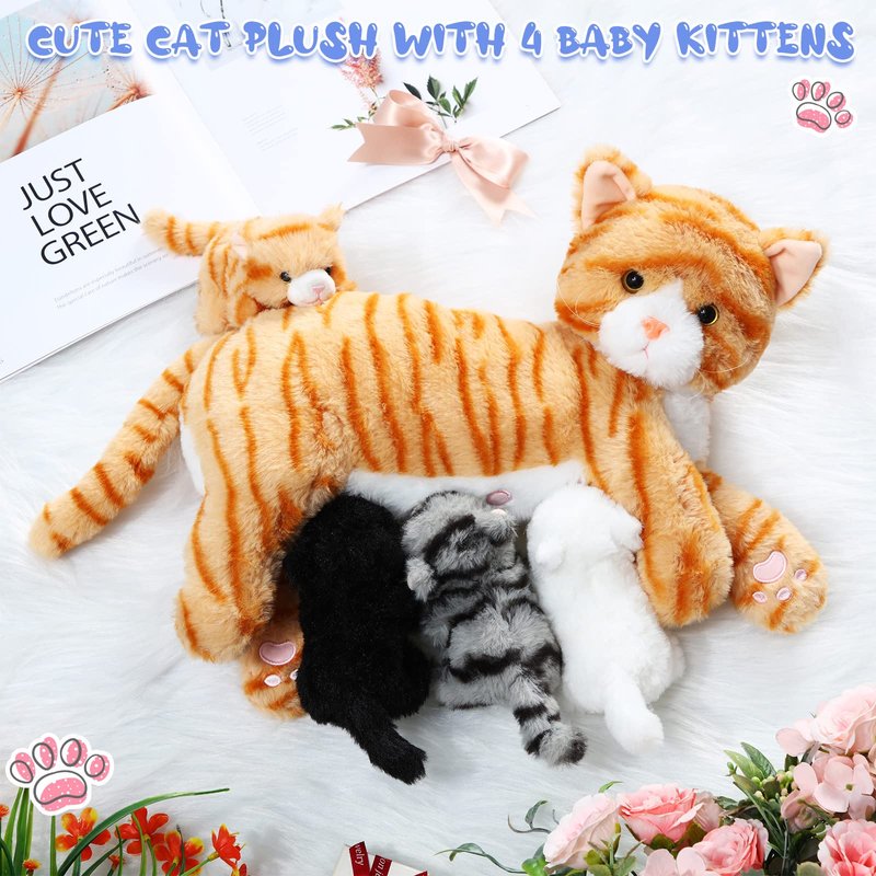 - Cat Stuffed Animals Set: package includes 1 mommy cat, measures 16 inch/ 40 cm, and 4 baby kittens measure about 5 inch/ 12 cm, vibrant and cute, attract people's attentions