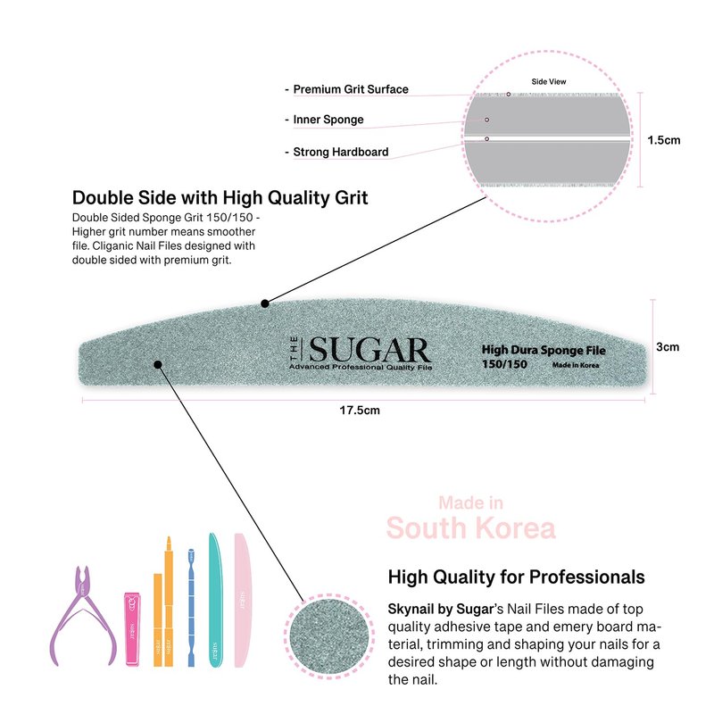 Skynail by Sugar 3in1 3PCS Nail File Set Grit 100/150/180 Professional Long-Lasting Reusable Double Sided Emery Board Nail Styling Tools for Home and Salon Professionals