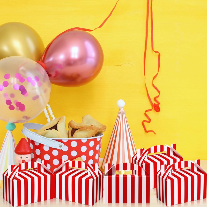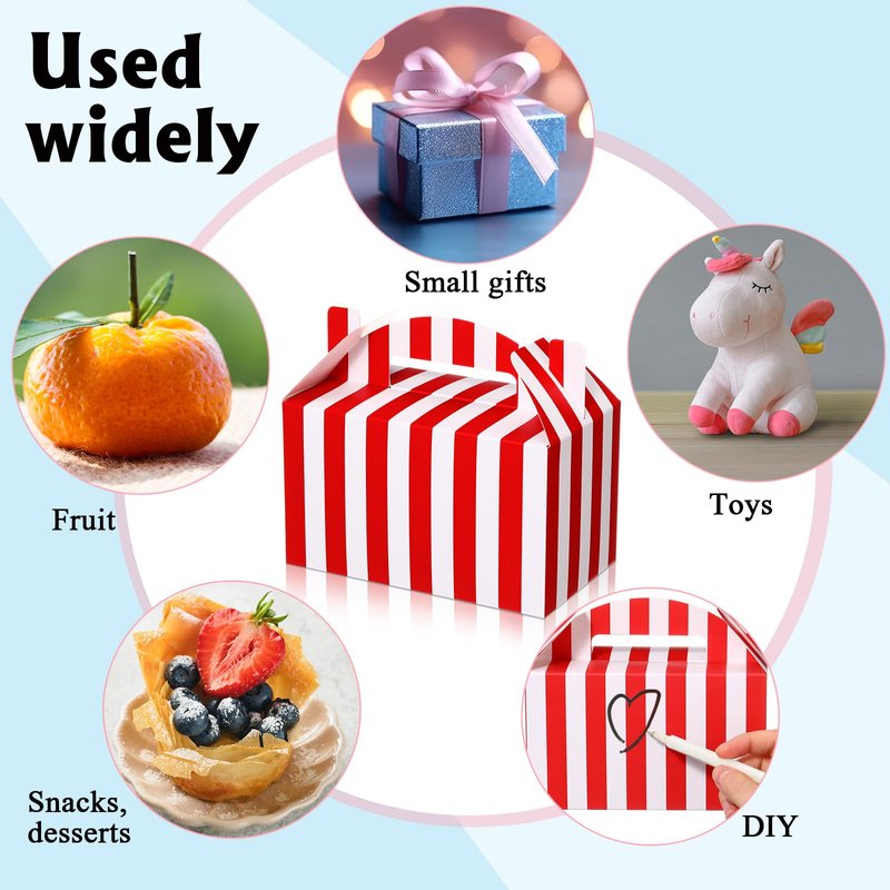 - Abundant Gift Wrapping Collection: enjoy easy and efficient gift wrapping with our well prepared package that includes 24 pieces of circus treat boxes for desserts with handles; Presented in red and white striped, this set provides you with the versatility and convenience you desire for festive occasions or birthday celebrations