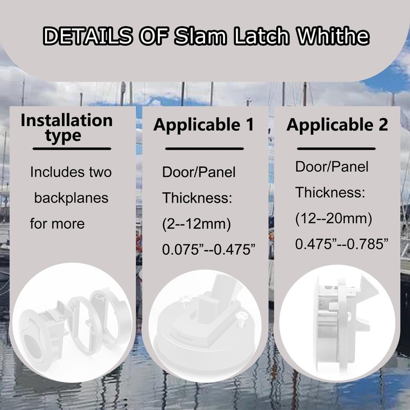 - 【Widely Application】Widely used for mounted 2" cut out. on access doors, bait well lids, hatches, center console doors, tackle units, and drawer units, electrical enclosures.Our slam latches range from small, plastic grabbers for cabinets and other light-duty applications cabinets.
