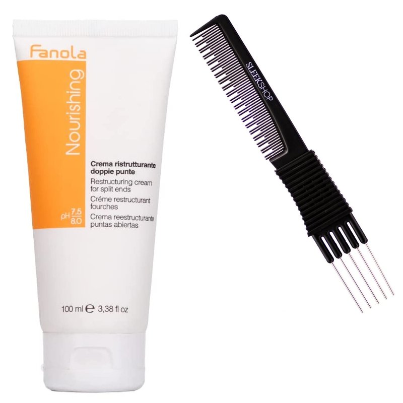Sleekshop Comb + FanoIa NOURISHING Restructuring Cream for SPLIT ENDS on Hair (w/SLEEKSHOP Premium Carbon Teasing Comb) (3.38 oz (PACK OF 1))