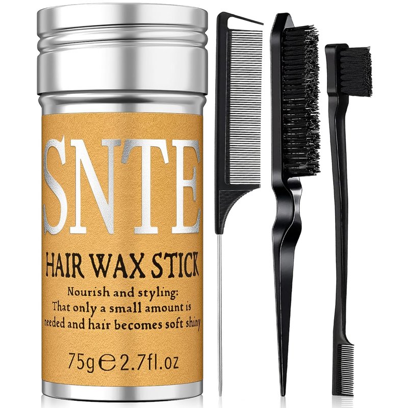 - HAIR WAX STICK SMOOTHING HAIR BRUSH SET: Wax Stick for Hair styling products 2.7 Ounce(1 Pack), edge brush(1 Pack), rat tail comb(1 Pack) and bristle brush(1 Pack), which works well to help you tame edge flyaways and baby hairs, meeting your a variety of different hairstyles needs.