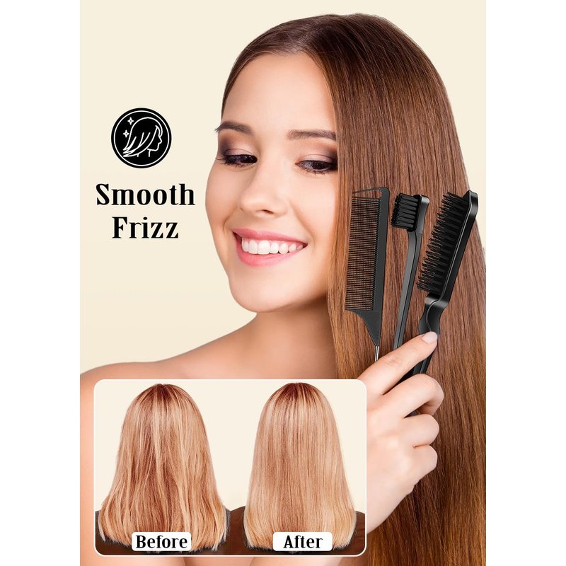 Includes teasing brush, Rat Tail Comb & edge brush to solve a variety of hair problems.