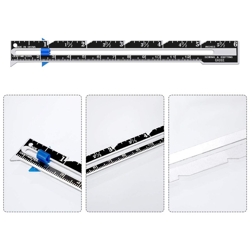 The adjustable sliding gauge can be applied as t-guage, hem guage, seam allowance, buttonhole spacer and circle compass, useful measuring tool for sewing, waving, measuring, stitch works and more.