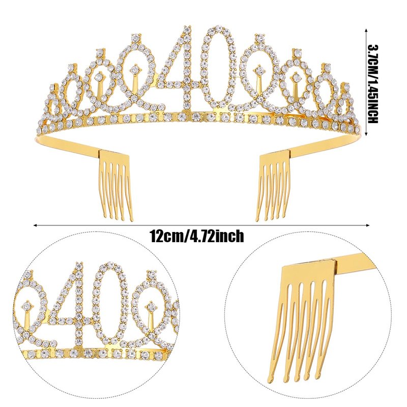 - 【40th Birthday Crown】Gold 40th birthday tiara is made of alloy metal,crystals and rhinestones, which is quality material and fine workmanship; As you know the corwn always give people a feeling of queen;yeah you are the queen on your birthday party;just enjoy it!!
